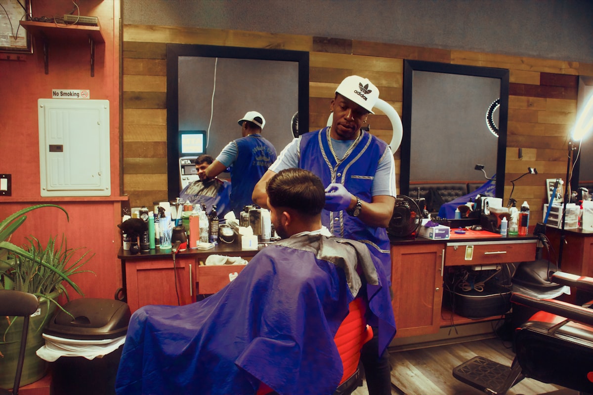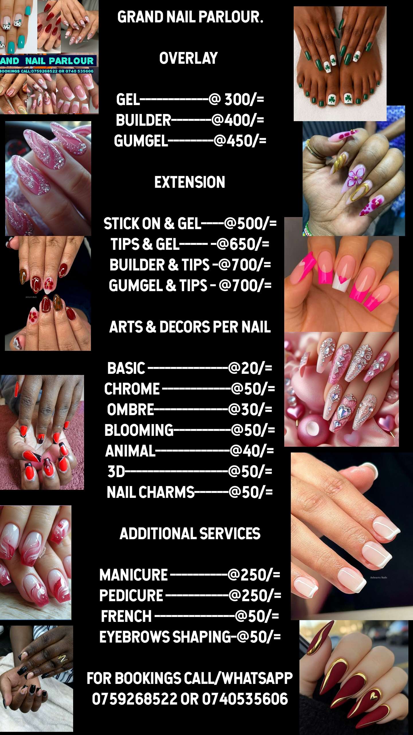 We offer a full range of barbering services, including precision haircuts, stylish shaves, and beard grooming. For nail art, we provide everything from classic manicures to intricate, custom designs.